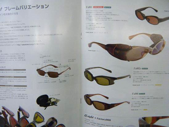 α-sight10周年を飾る記念カタログとして、フレームバリエーションは勿論、レンズカラーの解説などを詳しく紹介しています。